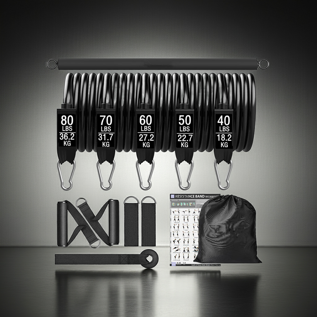 Secure the band to any stable point or use body anchoring. Multiple resistance levels adapt to your strength and goals.
